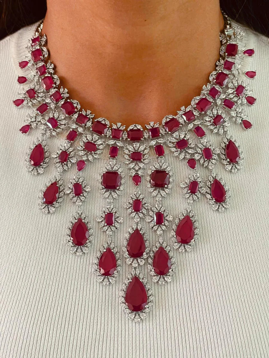 ❤️👑✨ Maharani Zarnoor Rubiyana Royal Court Empress Moissanite Polki Kundan& Tejaswini Ruby Zareen Darbar Sovereign Necklace Set(2 Necklace & 2 Pairs of Earrings) Experience the magnificence of true royal heritage...