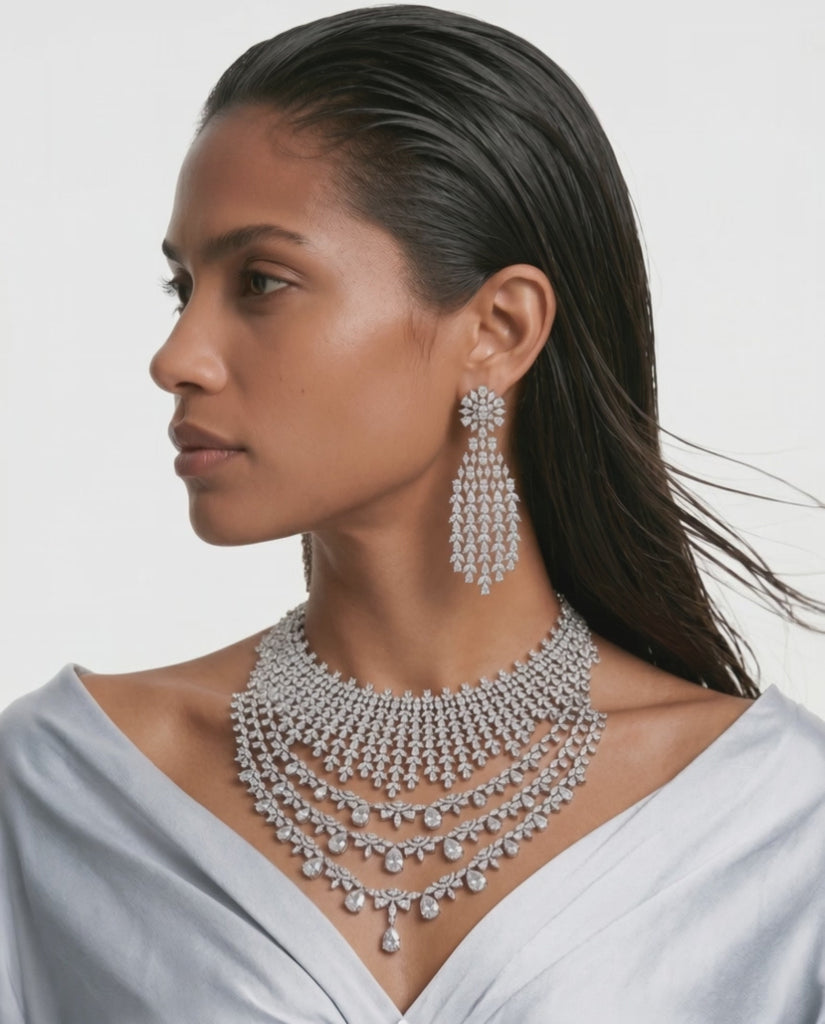 Pazeer Moissanite Polki Kundan with Zircon Diamond Detailing Statement Necklace Luxe Set (Necklace & Earrings)