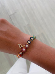 اجعلها شخصية ، اجعلها ثمينة. هذا سوار حرف واحد متعدد الألوان مخصصة هو تذكار مثالي ل راخي ، أعياد الميلاد ، وهدية قلبية. يضم ألوان المينا الجريئة، وميض التفاصيل الزركون المكعبةوعرف سحر الأبجدية، تم تصميم هذا السوار لتبرز. مدروس وعصري ، إنها قطعة لن يرغبوا في الإقلاع أبدًا.