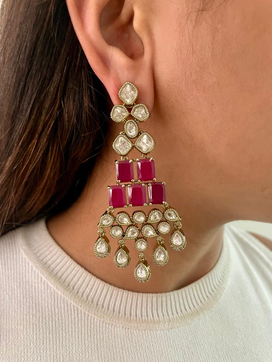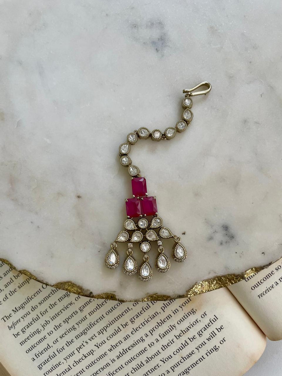 مجموعة قلادة Maharani Emerald Meena Kundan اللؤلؤية (أقراط وقلادة) هي من قطاع المجوهرات الهندية.