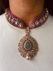 مجموعة قلادة هاسدي على شكل قطرة اللؤلؤ من أدور روبي مينا ديمونتي (قلادة وأقراط)