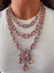 Zarfina Pink Blossom Maharani Imperial Haar Necklace Set (Necklace & Earrings)