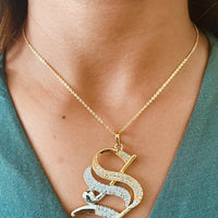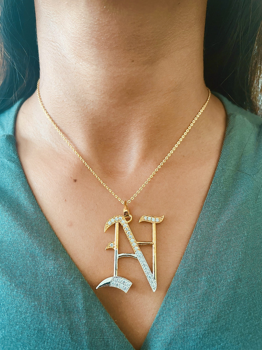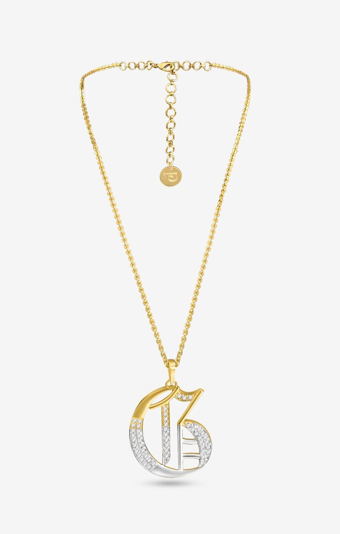 The dual toned necklace is intricately handcrafted in 24k gold plating and encrusted in Swarovski Crystals, give yourself or a loved one our Initial pendant necklaces which makes for a gift that holds a personal touch of joyful memories & special meaning.