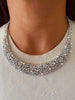 Featuring cultured pearl-inspired stones framed with diamond-cut zirconia, this short-length necklace sits gracefully at the neckline. Matching earrings complete the set, making it the perfect choice for brides and statement-makers alike.