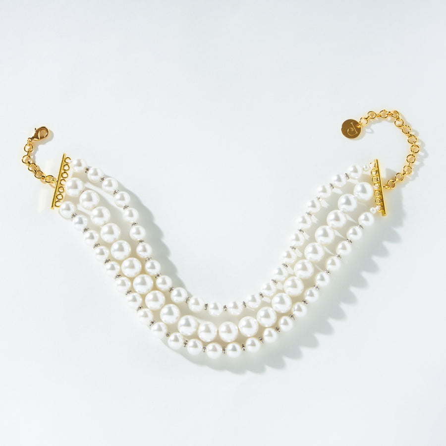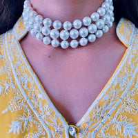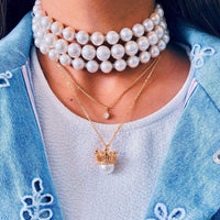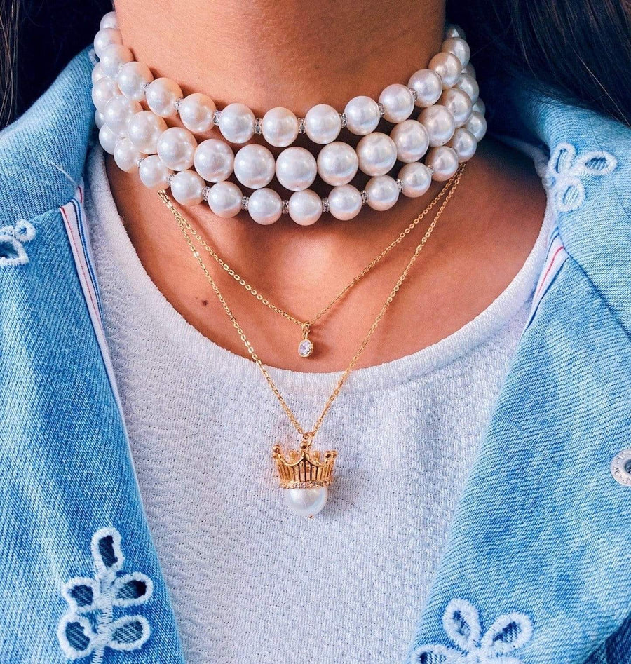 Strung with bold statement sized pearls with crystal accents in between, this is definitely a classic to own! Can be styled solo or layered with our complimenting necklaces for a fun & edgy vibe.