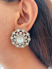 These statement studs feature a central Polki stone surrounded by intricate Polki-set detailing, framed in rich Kundan artistry. Versatile and regal, they are perfect for brides, festive wear, and sophisticated evening occasions, pairing effortlessly with both traditional and Indo-Western outfits.