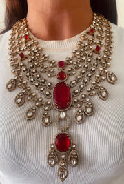 Alina Ruby Darbar Throne Rajwada Empress Grand Heirloom Haar Necklace Set (Necklace & Earrings)