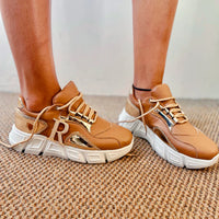 The Tan Personalised Sneakers made from rexin embellished with swarovski crystals (same initial on each shoe) is the perfect shoe to wear to all occasions. This one is sure to complete all your looks, making a statement everywhere you go, be it at brunch with the girls or at the airport.