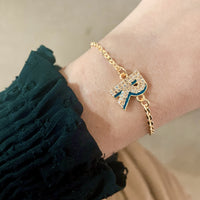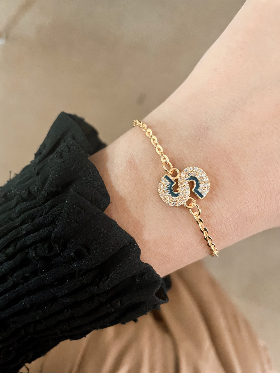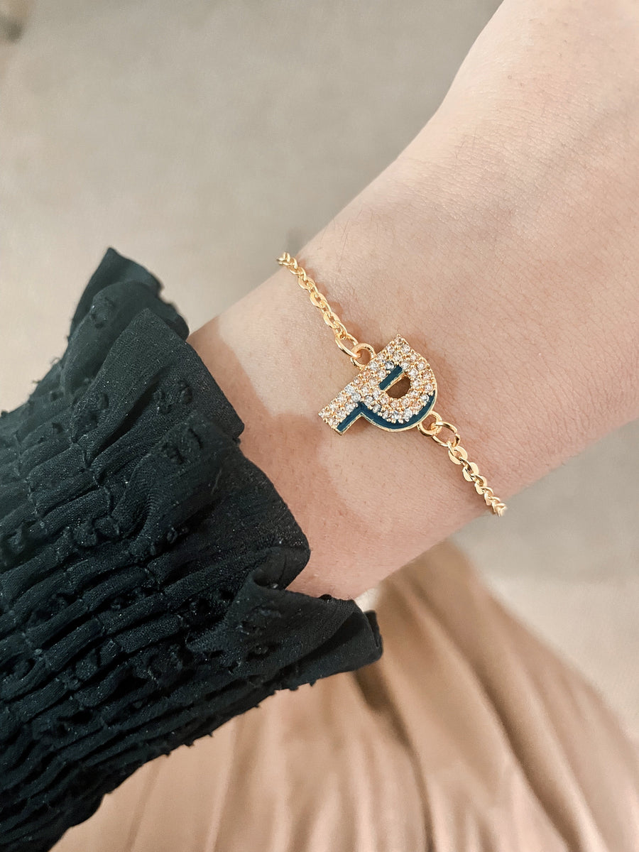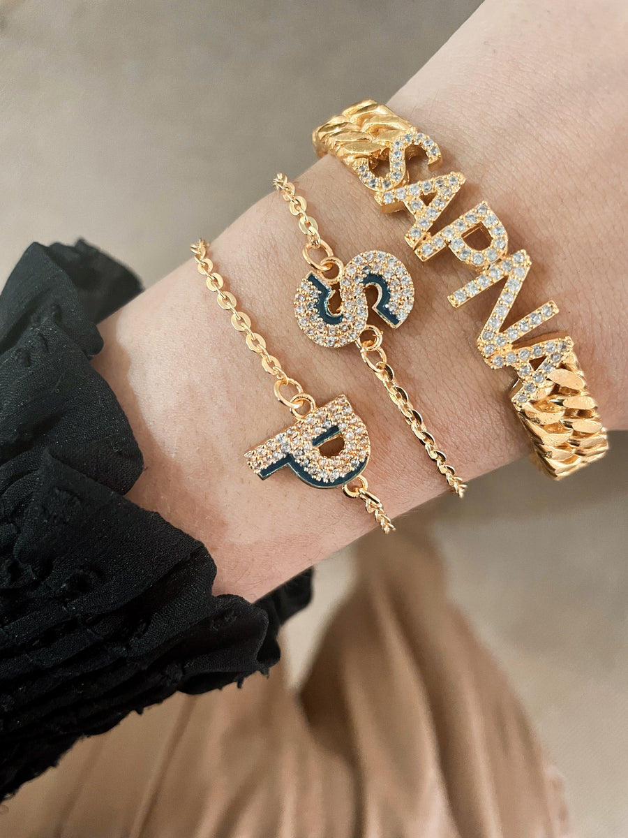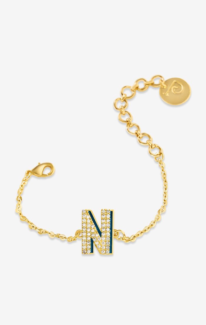 Esta carta de doble tono con cristales brillantes está hecho a mano en un revestimiento de oro de 24k. El collar de Shadow Iniziale es lindo, moderno y es un estilo que desea agregar a su aspecto diario.