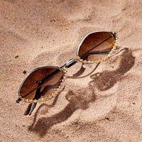 Hecho de metal de tono dorado y establecido con lentes teñidos marrones protegidos con UV, nuestros sunnies se detallan con espumoso Swarovski para crear una declaración de la declaración a donde vaya.