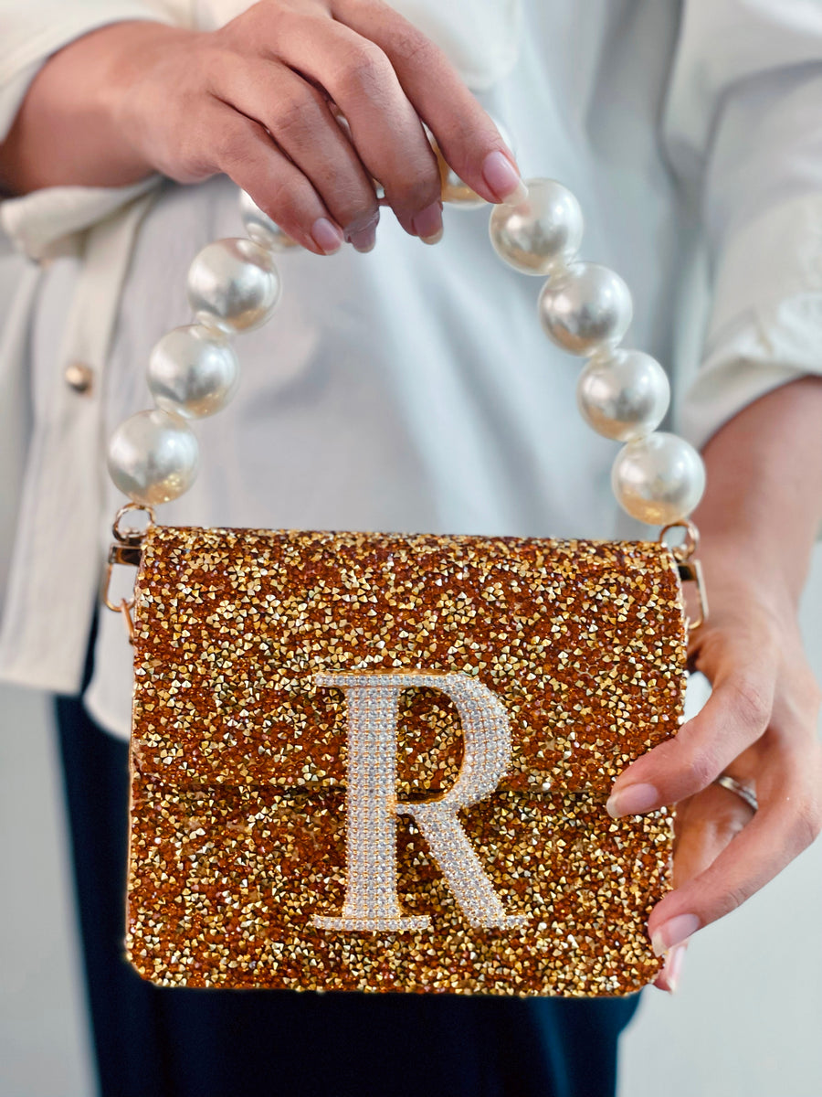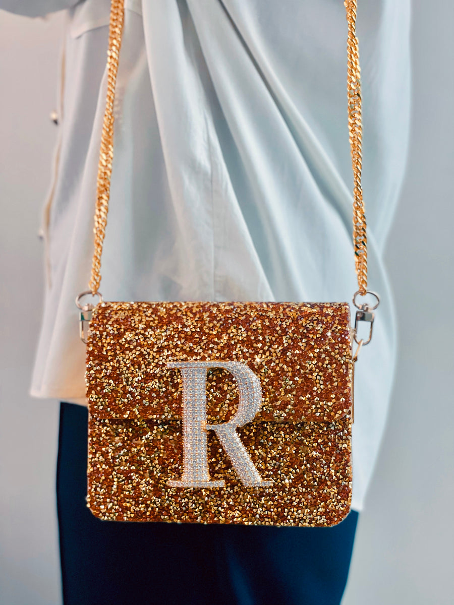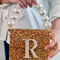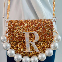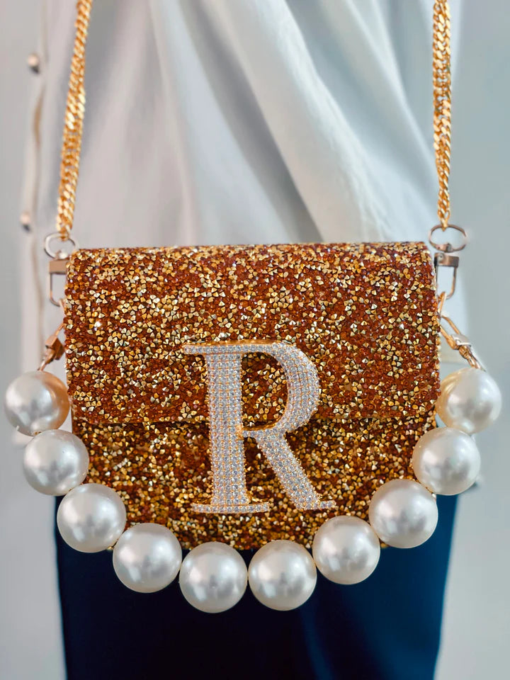 ¡El Alphabeto Glitterati Gold Crossbody es que todas las chicas soñan hechas realidad! Del tamaño perfectamente para adaptarse a todos sus elementos esenciales, con correas de perla y cadena desmontables, esta bolsa a medida es todo lo que ha estado esperando.