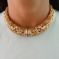 Adoor Ruby Meena Dimonte Pearl Drop Hasdi Collar Set (collar y aretes)