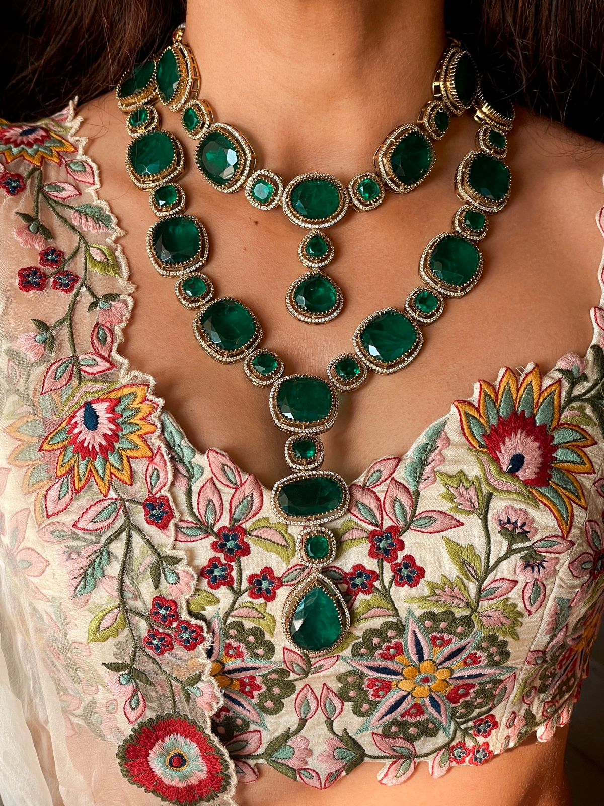Maharani Emerald Doublet & Diamond Choker & Zarfina Emerald Imperial Haar Necklace Set (2 Necklace & 2 Earrings)