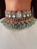 Padmashree Mani Emerald Moissanite Kundan Polki Choker Necklace Set ( Necklace & Earrings )