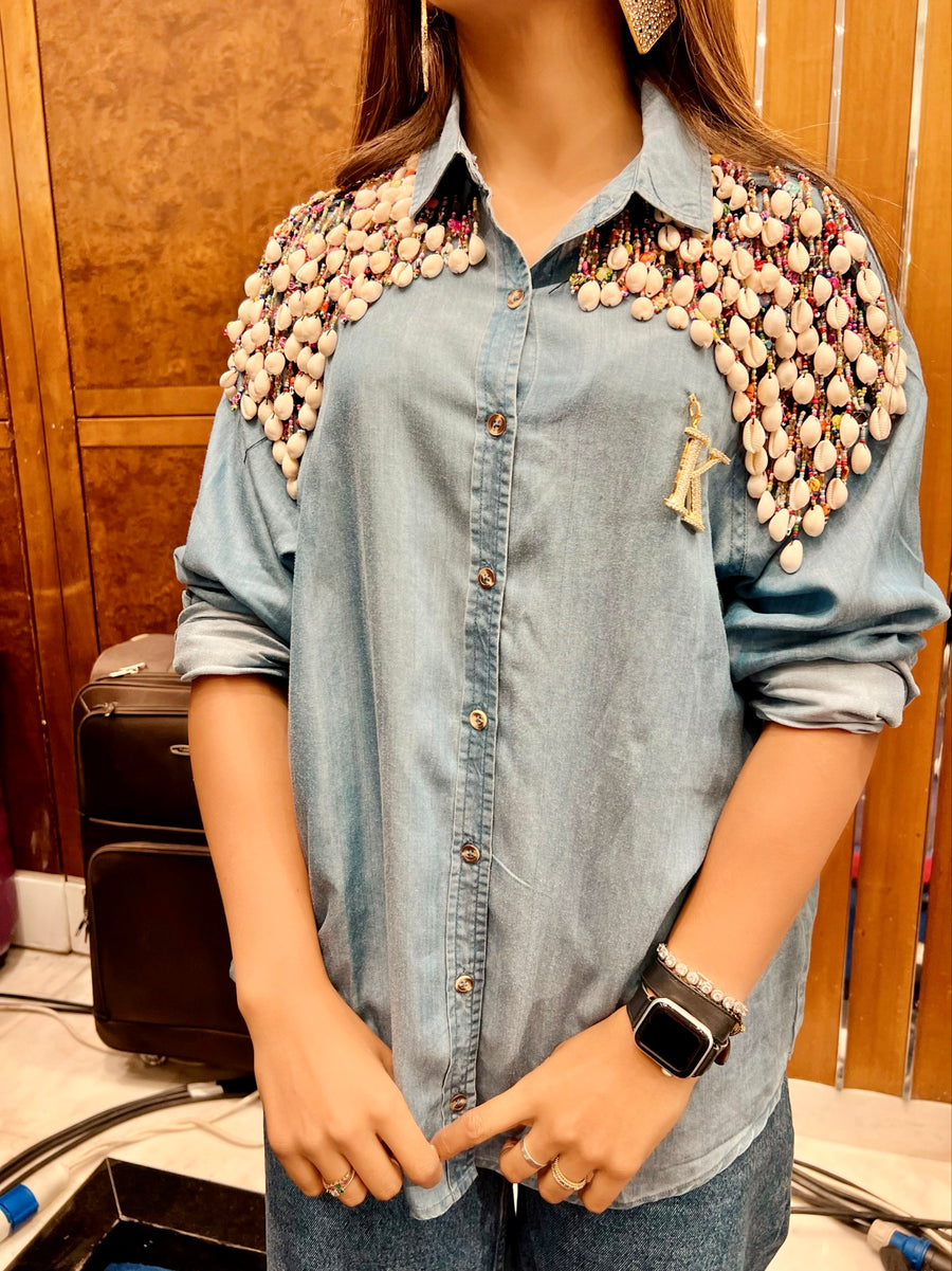 La chemise personnalisée conch denim est une superbe chemise en coton, parfaite pour tout jour ou nuit. Les glands ajoutent la bonne quantité de couleur, ce qui le rend approprié pour chaque instant. Stylez-le avec à peu près tout - il est sûr de faire une déclaration. Nous ne pouvons pas arrêter d'écraser sur celui-ci.