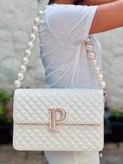 Notre sac matelassé Alphabeto est la perfection dans une courtepointe! Cette beauté correspond à tout ce que vous devez porter. Accentué d'une initiale Swarovski & Pearl, cette beauté scintillante est un rêve.