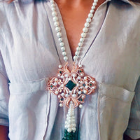De Cordelia -ketting is uiteengevallen van onze obsessie met alle traditionele dingen. Vervaardigd met glanzende zoetwaterparels en groene semi-dure aan de onderkant geregen. De ketting is gebouwd met een verstelbare kettingverlenger waarmee u deze op precies de juiste lengte voor u kunt dragen.