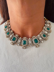Nikhat Emerald Sultanate Imperial Dynasty Collar Choker Necklace Set (Necklace & Earrings)
