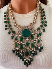 Zareena Emerald Mayura Court Empress Necklace Set (Necklace & Earrings)