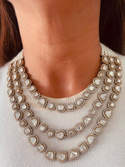 Zarfina Noor-e-Tilisma Triple Courtly Moissanite Polki Kundan Haar Necklace Set (Necklace & Earrings)
