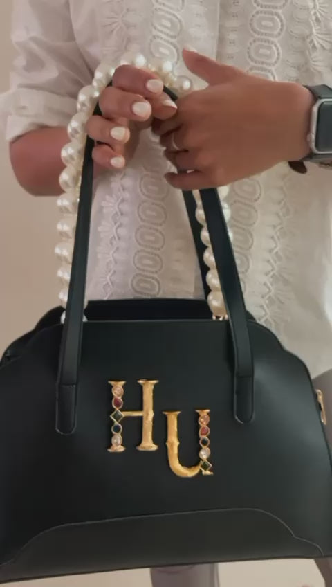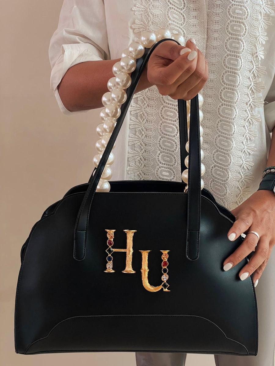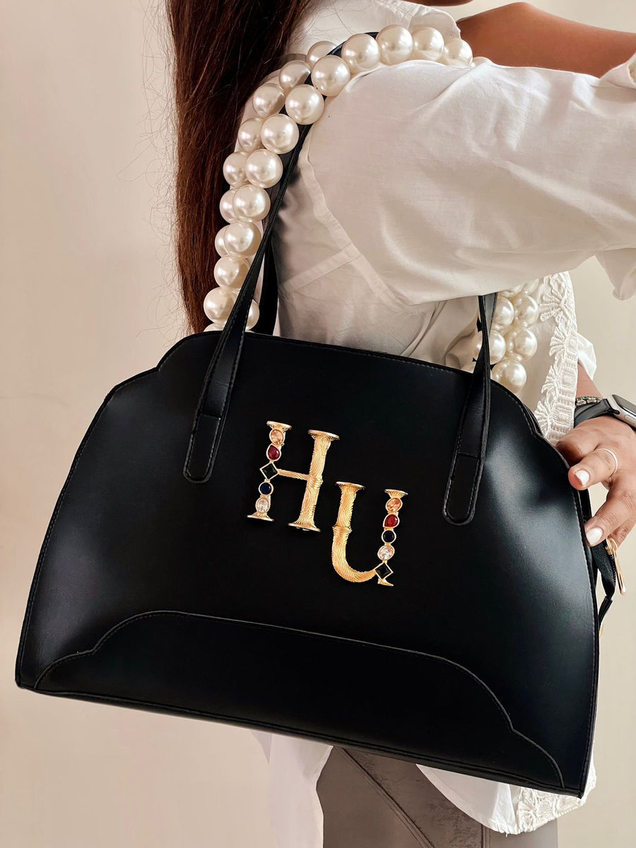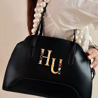 De alfabeto zwarte schoudertas gemaakt van veganistisch leer is de perfecte op maat gemaakte tas om alle gelegenheden te nemen. Het wordt ook geleverd met een zakje en een zipzak. Deze zal zeker al je looks voltooien, overal een verklaring afleggen, of het nu bij de brunch is met de meisjes of op de luchthaven.