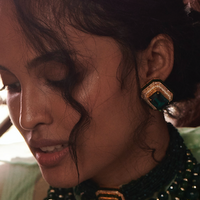 Versierd met parels, diamanten en kralen, zal deze 24K Gold Pelled Emerald Stud zeker een verklaring afleggen in elke outfit die je siert. Eenvoudig maar zo elegant en veelzijdig.