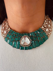 Emerald Zar-e-Sheeshraani Royal Dynasty Moissanite Polki Kundan Necklace Set (Necklace & Earrings)
