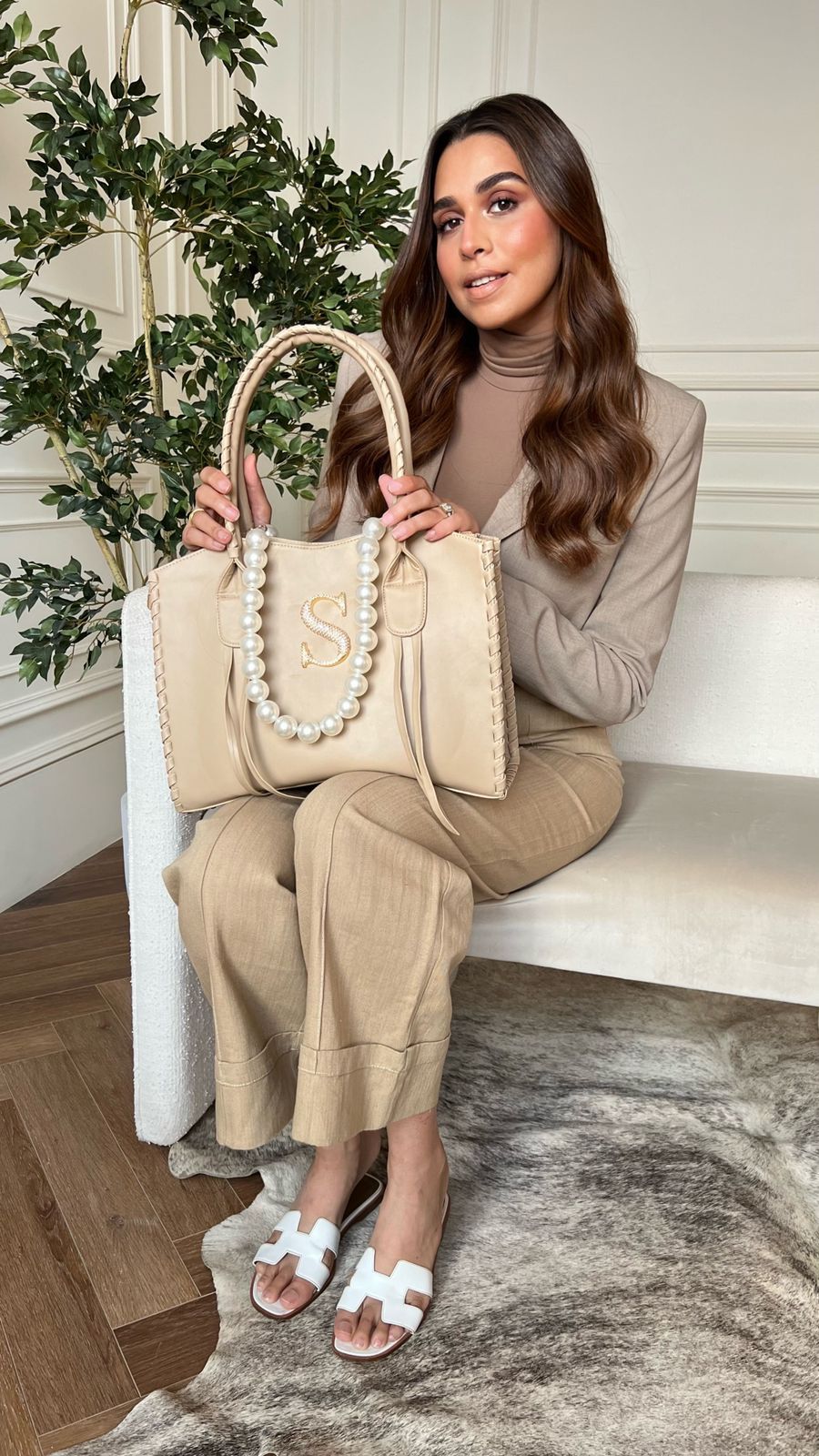 Introductie van onze chique Lazo Personalized Cream Tote -tas, gepersonaliseerd met een Swarovski -bezaaid initiaal en met afneembare parelgrepen en gemaakt van veganistisch leer. Dit veelzijdige en stijlvolle accessoire is perfect voor het toevoegen van een vleugje glamour aan je dagelijkse ensemble. Onze draagtas is vervaardigd met materialen van hoge kwaliteit en combineert bruikbaarheid met elegantie. Winkel nu en verhef uw modespel met een gepersonaliseerde veganistische lederen draagtas versierd met weelderige Swarovski -kristallen en veelzijdige parelgrepen. Ervaar vandaag de perfecte mix van stijl en functionaliteit.