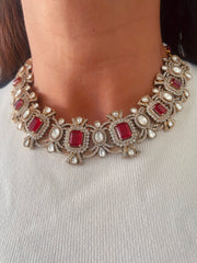 Nikhat Ruby Sultanate Imperial Dynasty Collar Choker Necklace Set (Necklace & Earrings)
