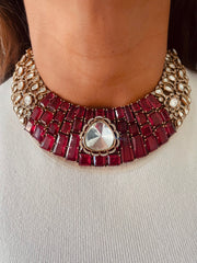 Ruby Zar-e-Sheeshraani Royal Dynasty Moissanite Polki Kundan Necklace Set (Necklace & Earrings)