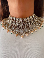 Zareen Sheeshmahal Maharani Heirloom Moissanite Polki Kundan Choker Necklace Set (Necklace & Earrings)