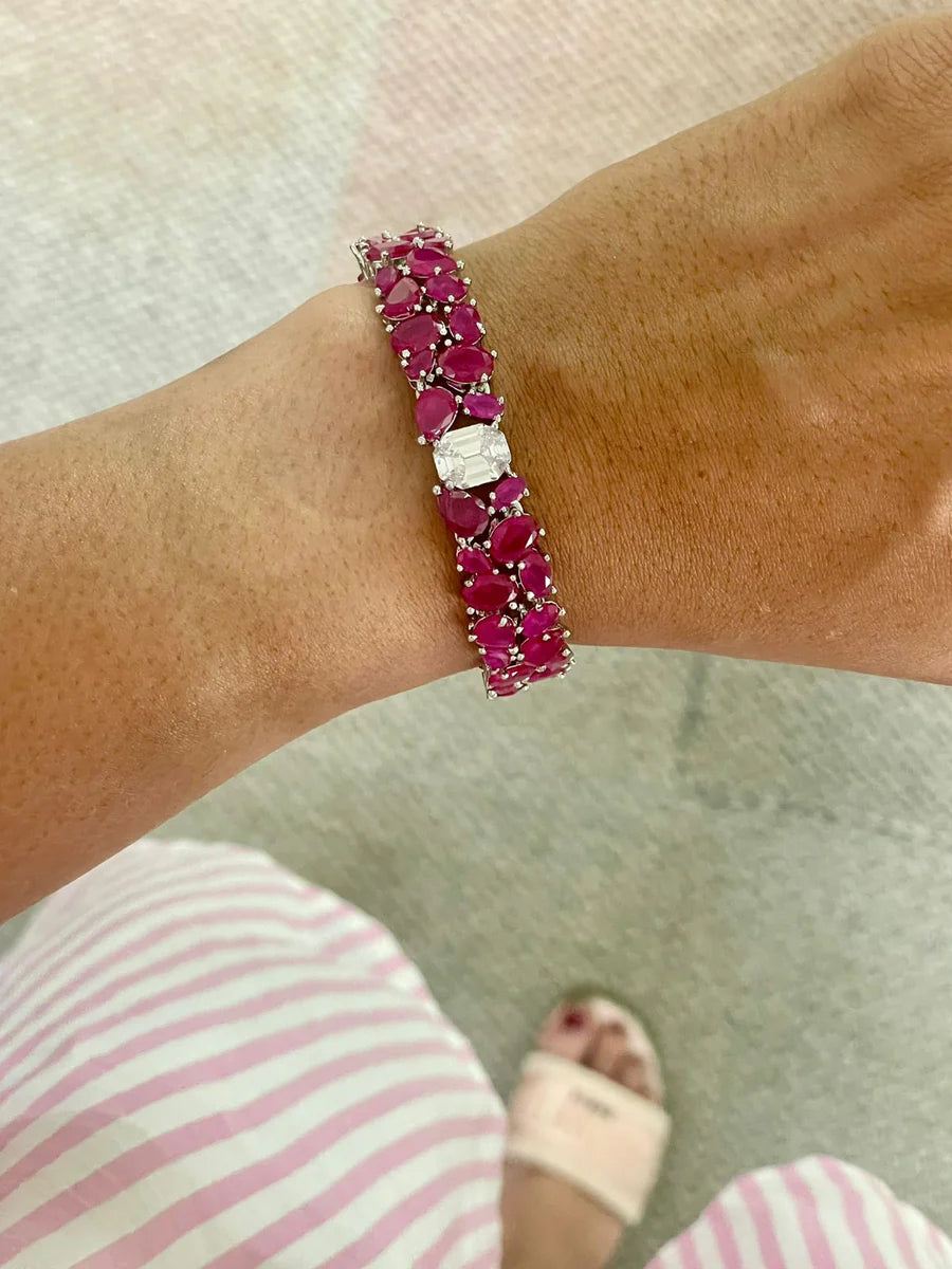 5 Layer Diamond Ruby Center Necklace Set