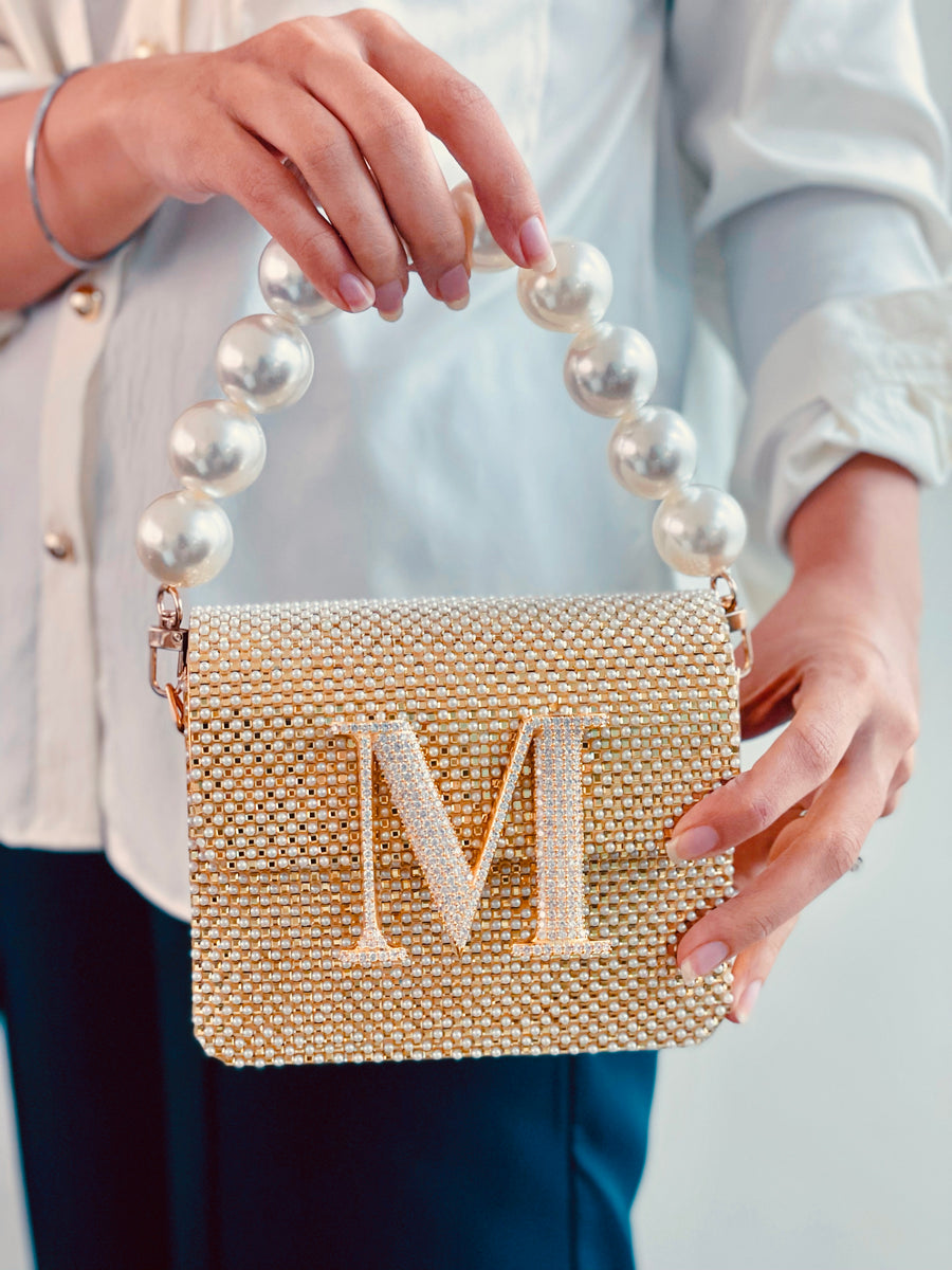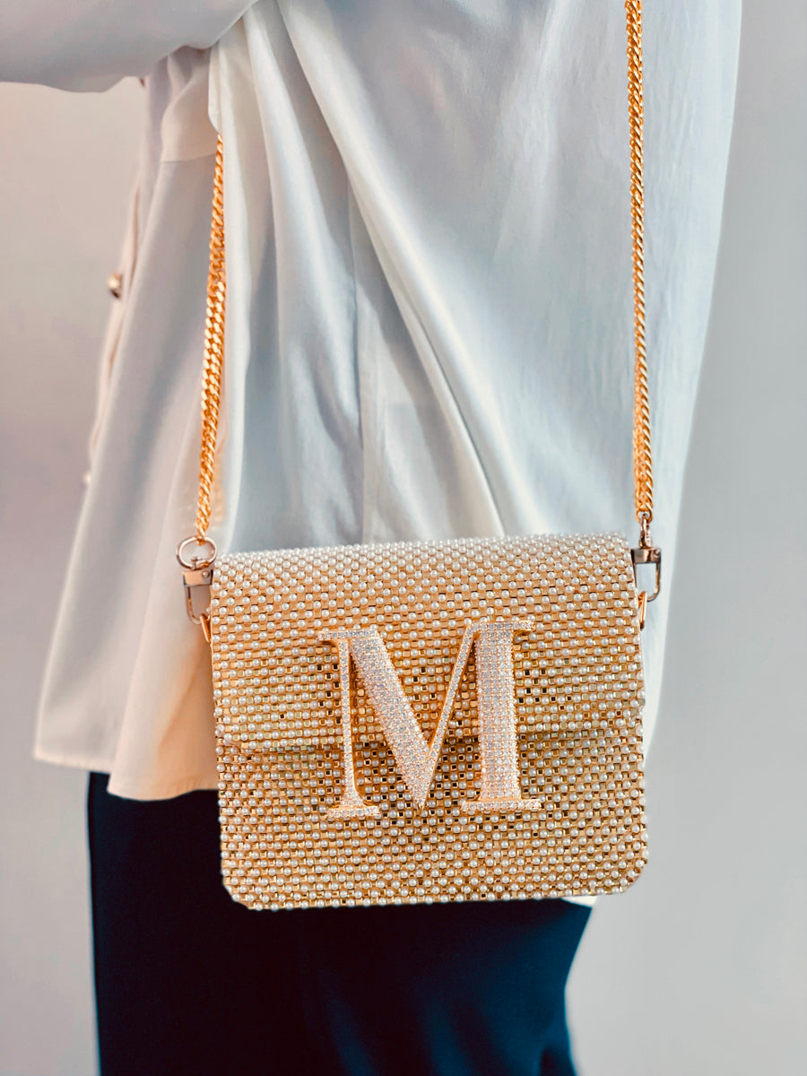 The Alphabeto Pearle Gold Crossbody is every girls dream come true! Perfectly sized to fit all your essentials, with detachable pearl and chain straps, this bespoke bag is everything you've been waiting for.