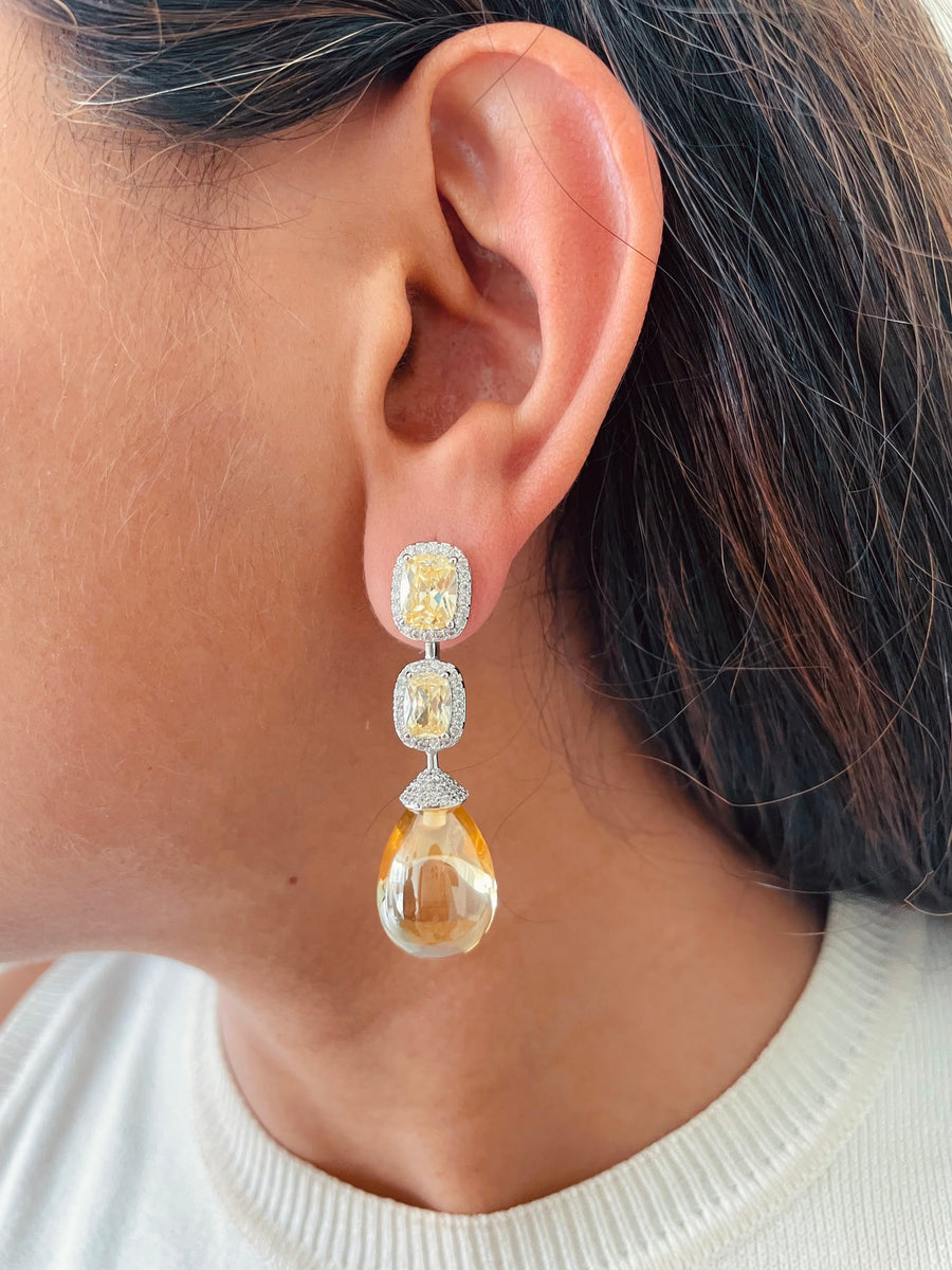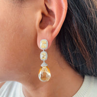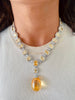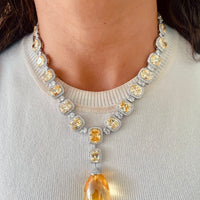 Citrine Cushion Cut with Zircon Detailing and Large Citrine Stone Necklace Set (Necklace & Earrings)
