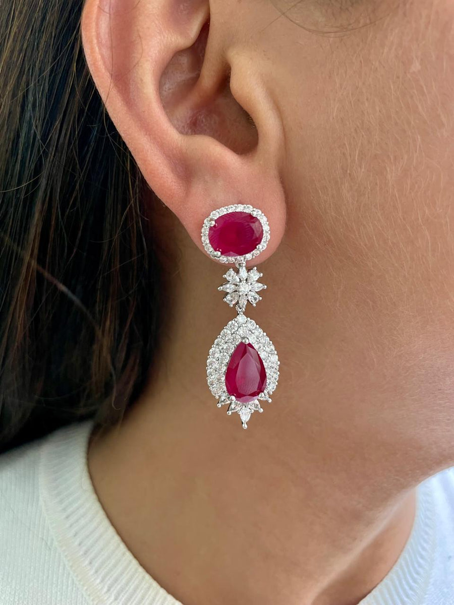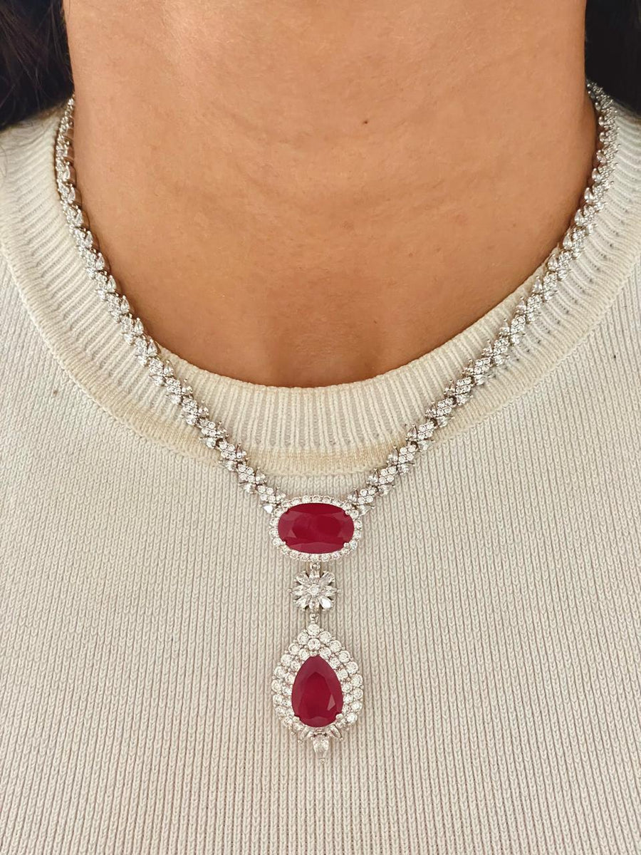 Ships quickly to New York, London, Dubai, Riyadh, Kuwait City, and Doha. Shine bright with the Comet Diamond Ruby Tear Drop Necklace Set—where cosmic charm meets radiant elegance.