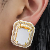 Adorned with pearls, diamonds and beads, this 24k gold plated emerald stud is sure to make a statement in any outfit you adorn. Simple yet so Elegant & Versatile.