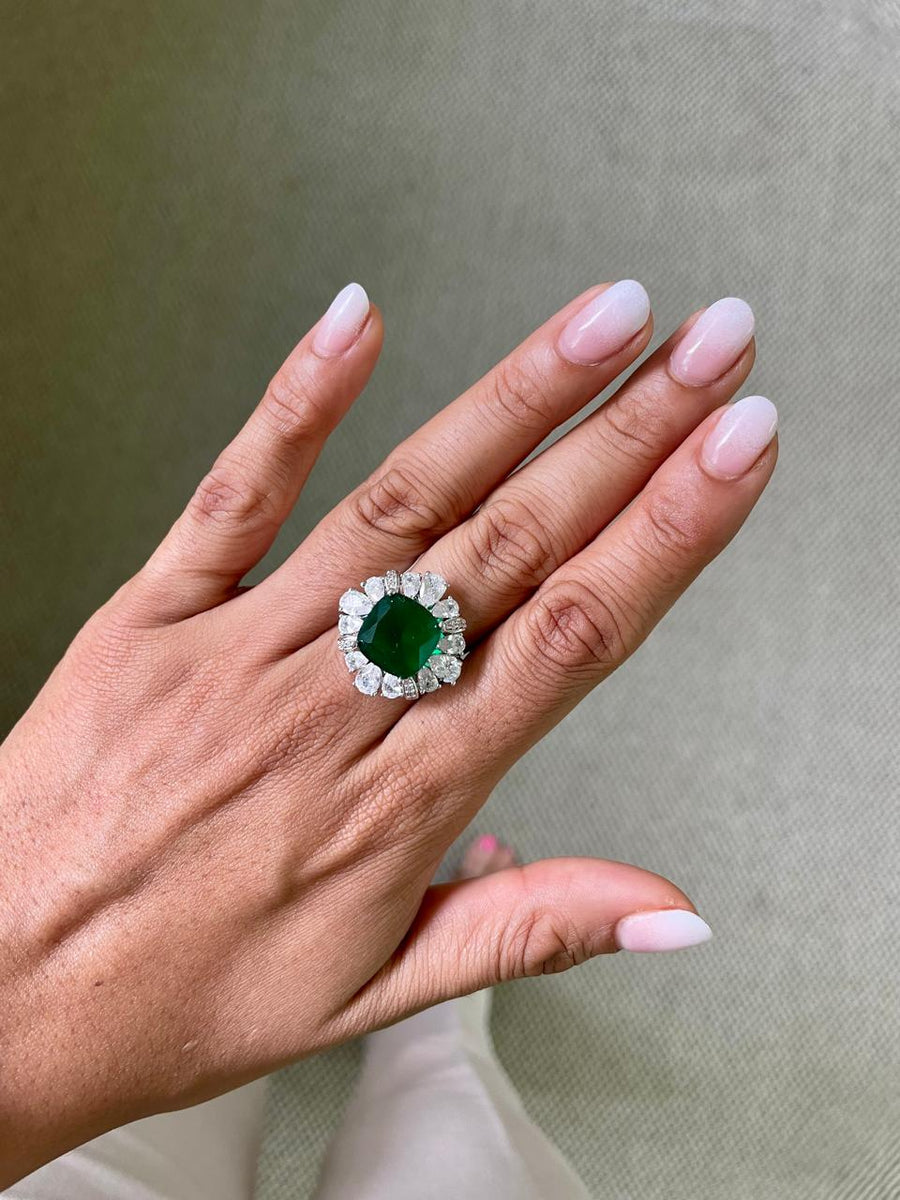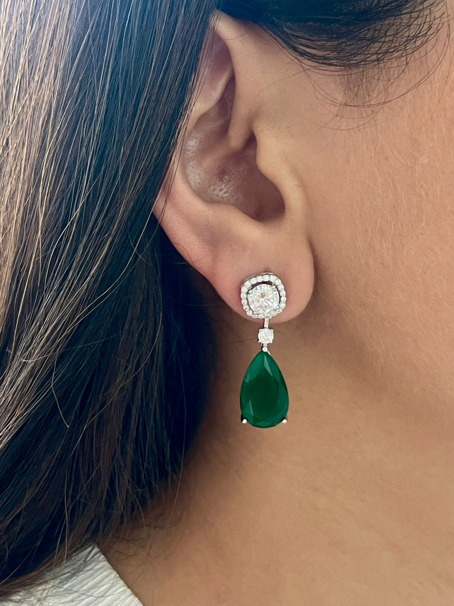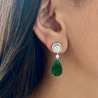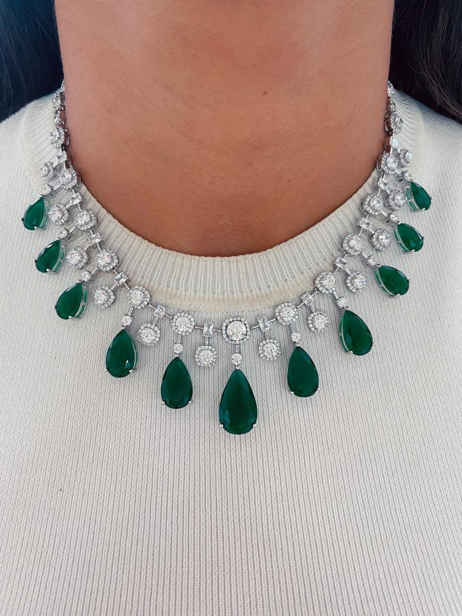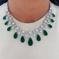 Rabta Emerald Tear Drops Circular Diamond Necklace Set