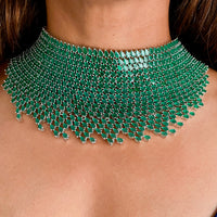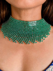 Looking to make a statement at the next event you go to We have you covered with our Grand Statement Kate Drop Emerald Necklace Set (Necklace & Earrings). Making you stand out; the choker is completely layered with semi-precious Swarovski diamonds to make it look subtle yet so chic such a statement choker set it is. Minimal yet so elegant. Can be paired multiple ways.