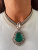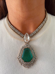 Heptagon Emerald Pendant Moissanite Polki Diamond Kundan Victorian Finish Necklace Set (Necklace & Earrings)