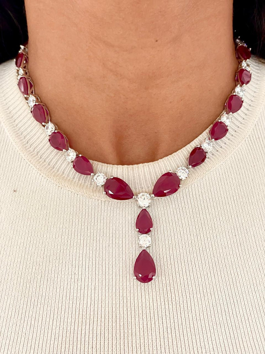 Ships quickly to New York, London, Dubai, Riyadh, Kuwait City, and Doha. Shine bright with the radiant Lenti Tear Drop Ruby Diamond Necklace Set—where timeless elegance meets vibrant glamour.