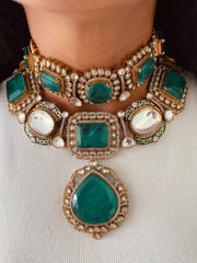 Maharani Nikhara Emerald Moissanite Choker & Necklace Set (Necklace & Earrings)