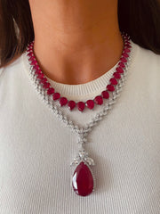 👑 Maharani Ruby Elliptic Diamonte Necklace Set