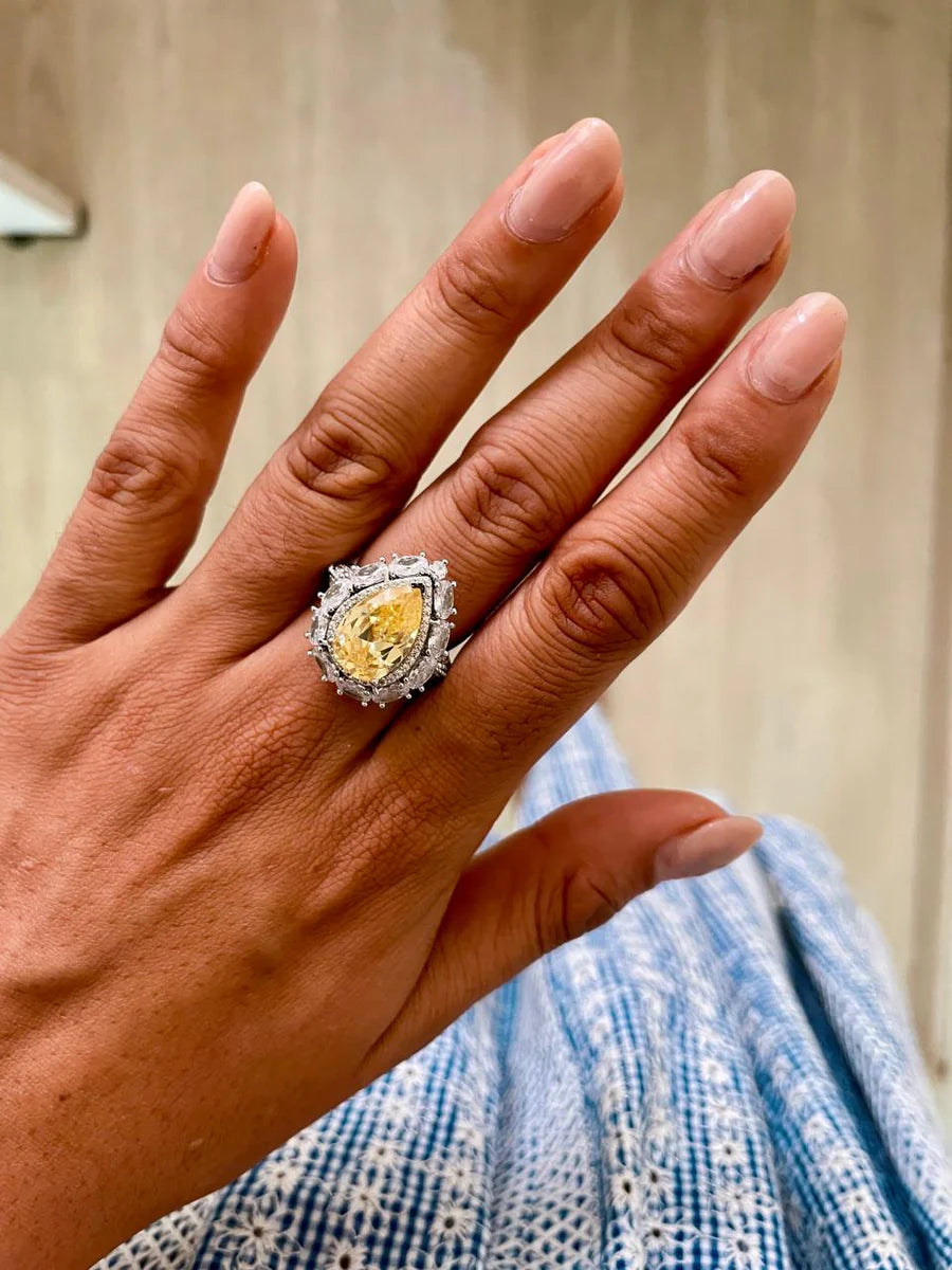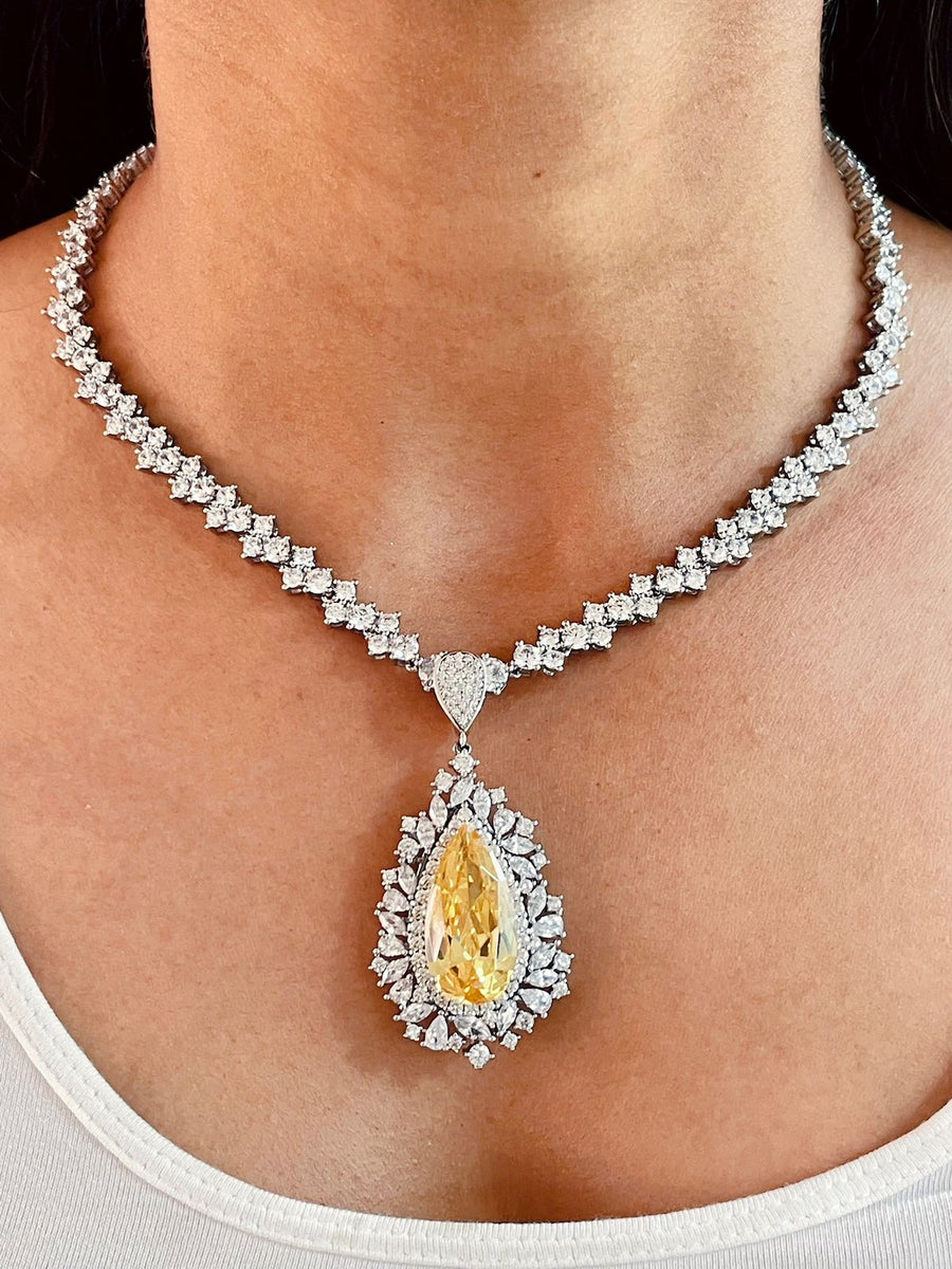 The Citrine Tear Drop Dimonte Set is an absolute Statement maker to take your outfit a 10 on 10 look. This Necklace is handcrafted to make to shine everytime you adorn it. Perfect for Any Occasion.