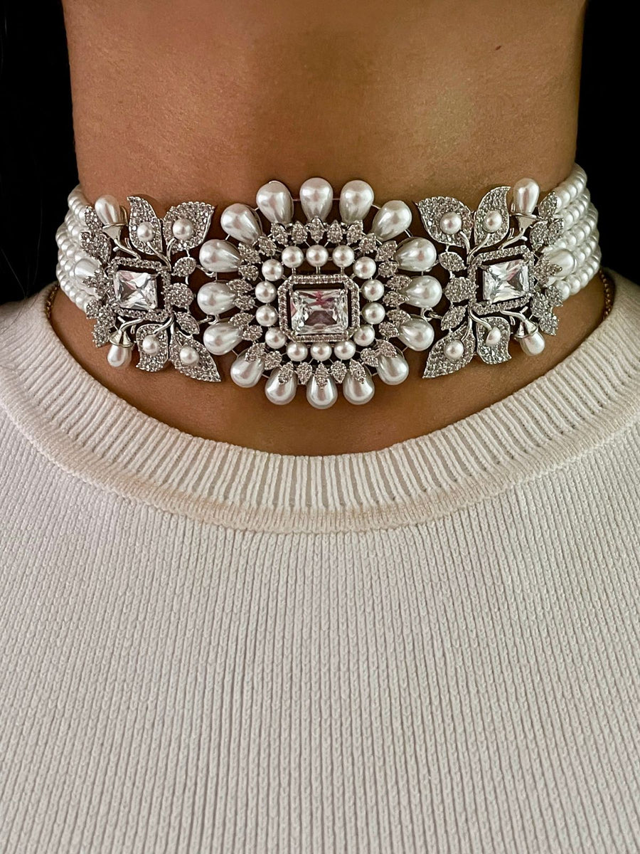 The Dual Floret Pearly Necklace Set (Necklace & Earrings) is an absolute Statement maker to take your outfit a 10 on 10 look. This Necklace is handcrafted to make to shine every time you adorn it. Perfect for Any Occasion.