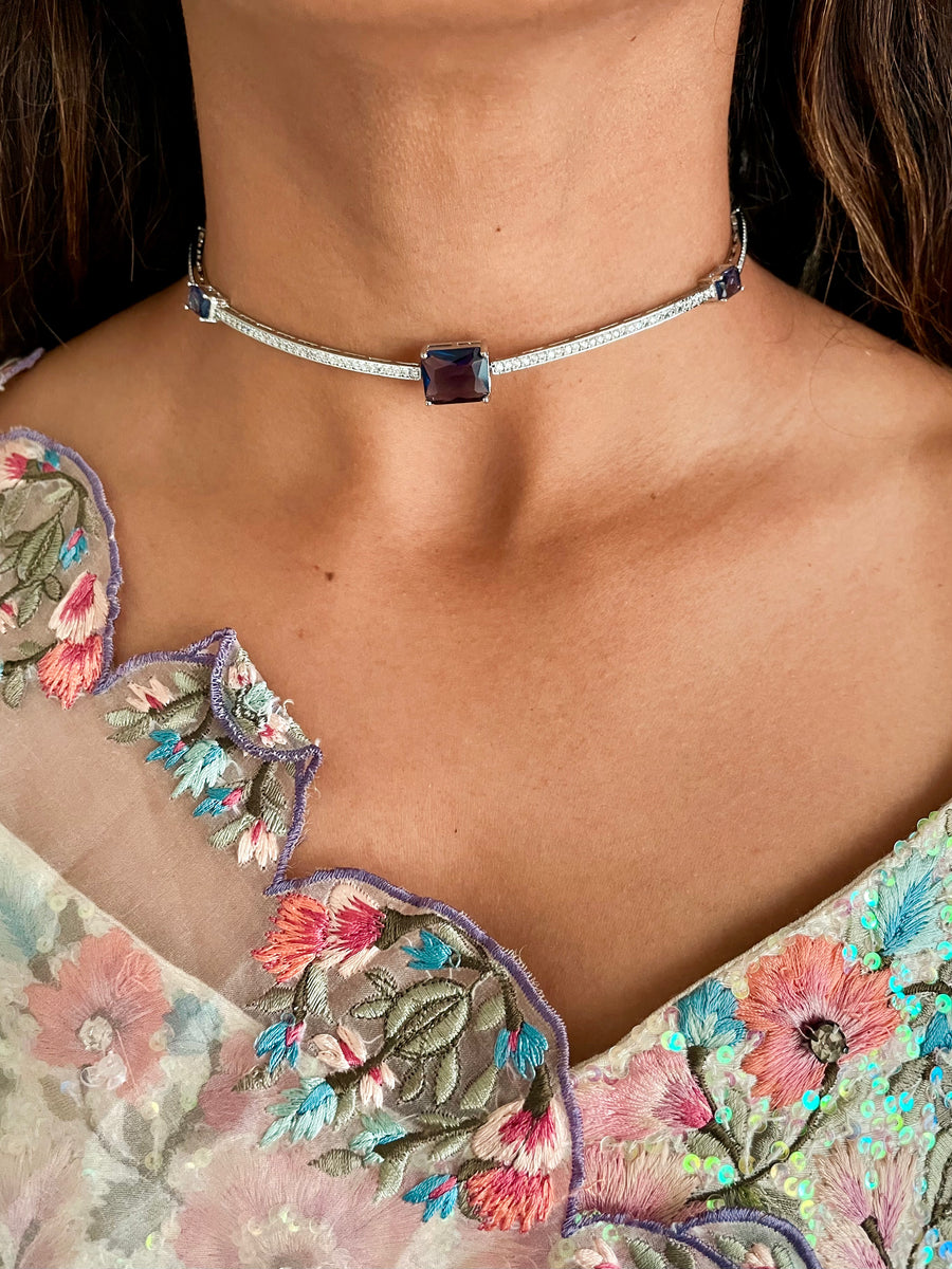 Purple & Paved Diamond Choker Necklace Set