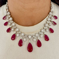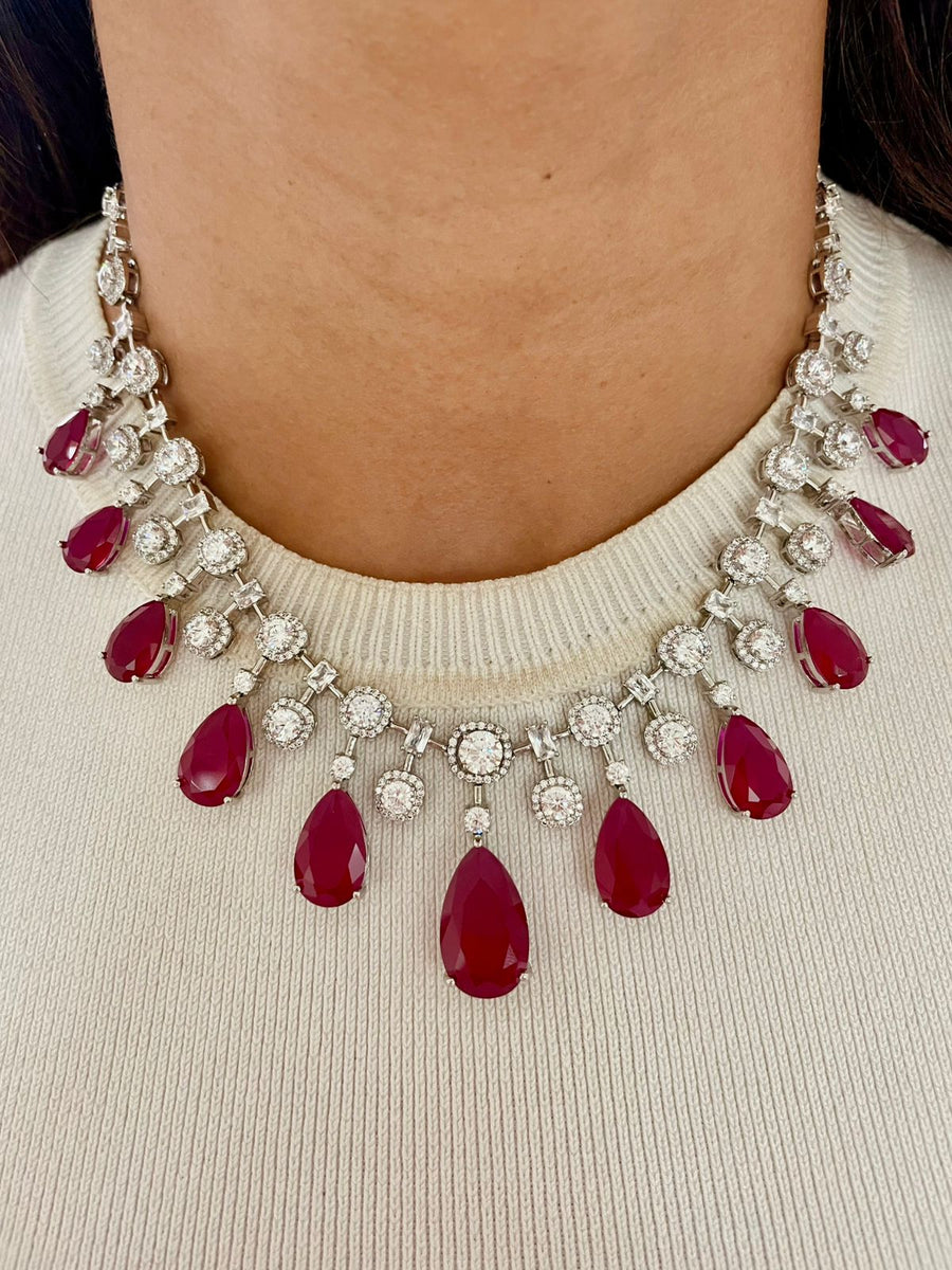 Rabta Ruby Tear Drops Circular Diamond Necklace Set