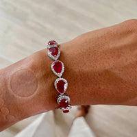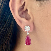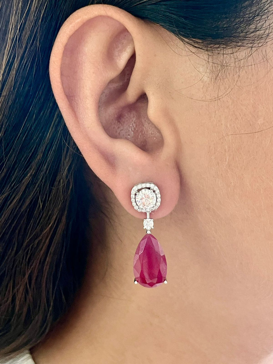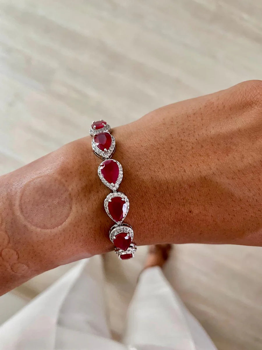 Ruby-colored stones with shimmering zircon tear drops and circular accents