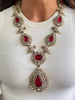 Ruby Drops Victorian Finish Kundan Polki Parrot Necklace Set (Necklace & Earrings)