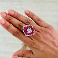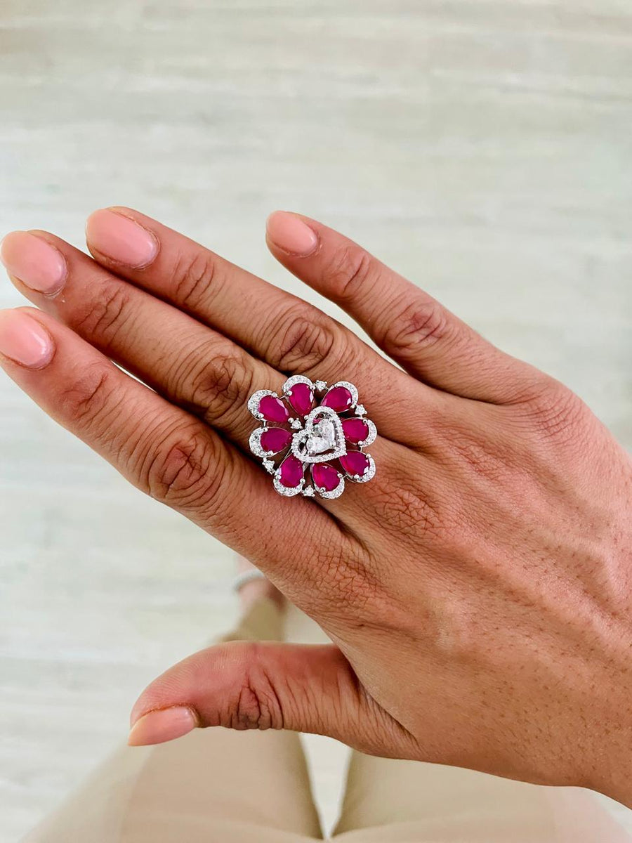 Ruby Veil Heart Diamond Tear Drop Necklace Set (Necklace, Earrings, Ring & Mang Tika)