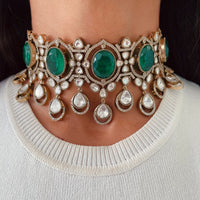 The Mahal Emerald Doublets and Moissanite Choker Necklace Set (Necklace & Earrings)